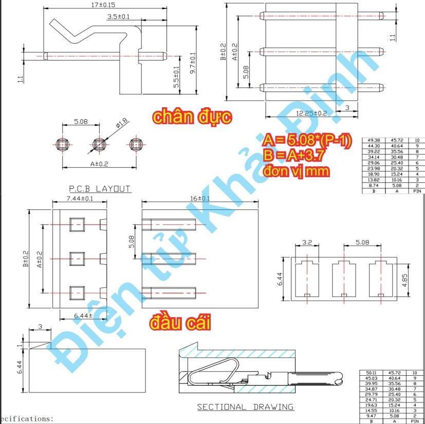 Bộ rời đầu nhựa ĐỰC CÁI LÕI SẮT JACK CẮM header CHÂN KẾT NỐI 5.08mm CH5.08 chân thẳng 2P ~ 8P kde0573