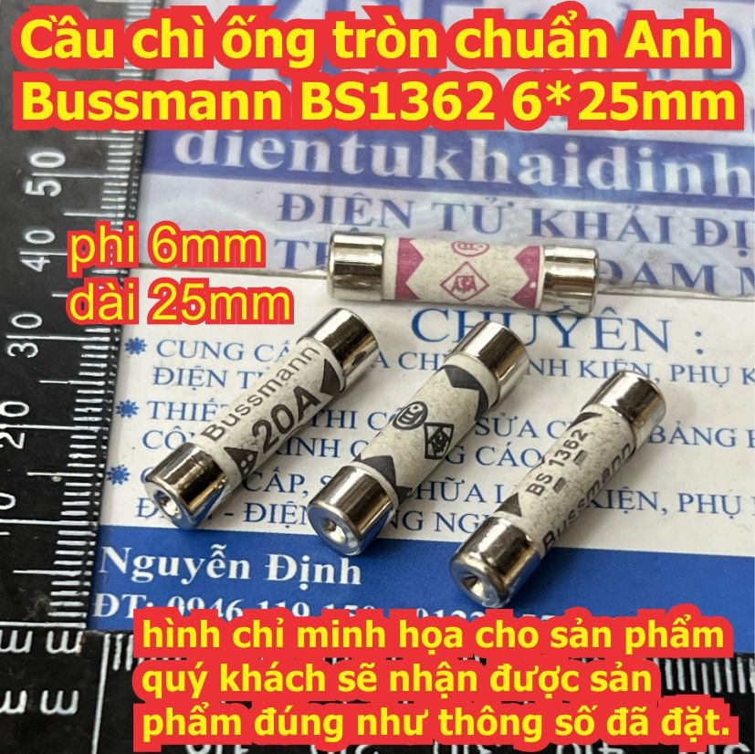 Cầu chì ống tròn chuẩn Anh Bussmann BS1362 6*25mm 2A ~ 20A kde8922