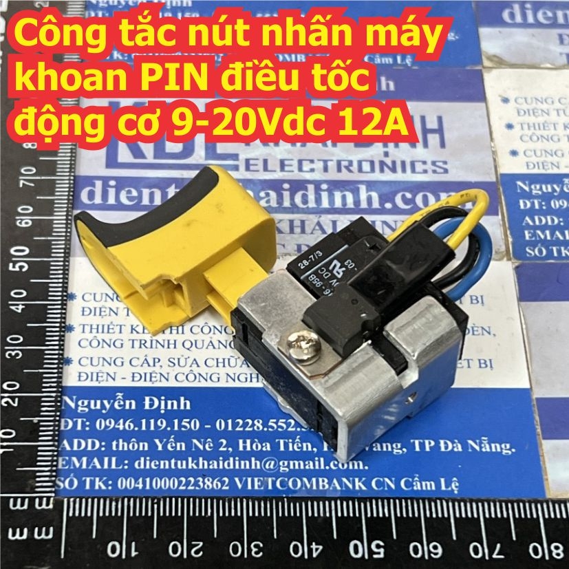 Công tắc nút nhấn máy khoan PIN điều tốc đảo chiều điều khiển động cơ motor DC 9.6-20Vdc 15-24Vdc 12A kde7769
