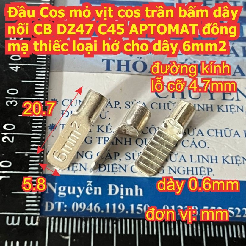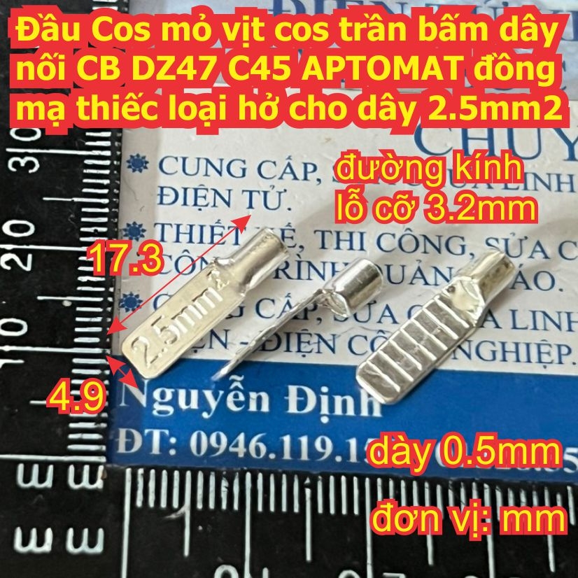 Đầu Cos mỏ vịt hở cốt trần vặn nối CB APTOMAT contactor các loại ĐỒNG mạ thiếc C45 DZ47 dây 1.5mm2 ~ 50mm2 kde9263