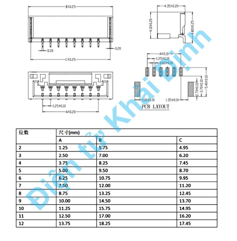 Đầu nhựa jack nối header 1.25mm GH1.25mm GH1.25 có khóa chân dán hàn PCB 2P 3P 4P 5P 6P 7P 8P kde9363