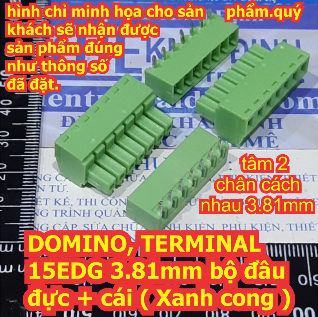 DOMINO, TERMINAL cầu nối 15EDG 3.81mm bộ đầu đực + cái ( Xanh cong ) 2P ~ 12P kde7274
