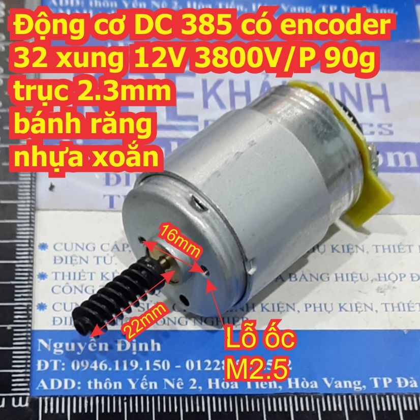 Động cơ DC 385 có encoder 32 xung 12V 3800V/P 90g trục 2.3mm bánh răng nhựa xoắn kde7984