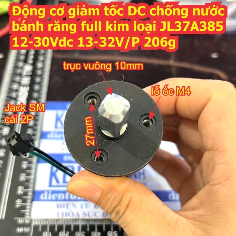 Động cơ giảm tốc DC chống nước bánh răng full kim loại JL37A385 12-30Vdc 13-32V/P 206g trục vuông 10mm kde2005