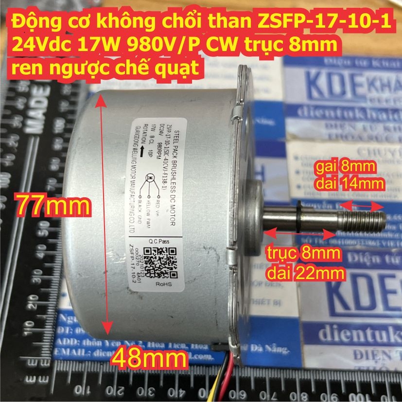 Động cơ không chổi than ZSFP-17-10-1 24Vdc 17W 980V/P CW trục 8mm ren ngược chế quạt máy kde9164