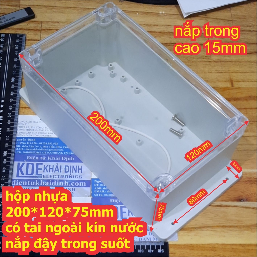 hộp nhựa 200*120*75mm, có tai ngoài kín nước kde3198