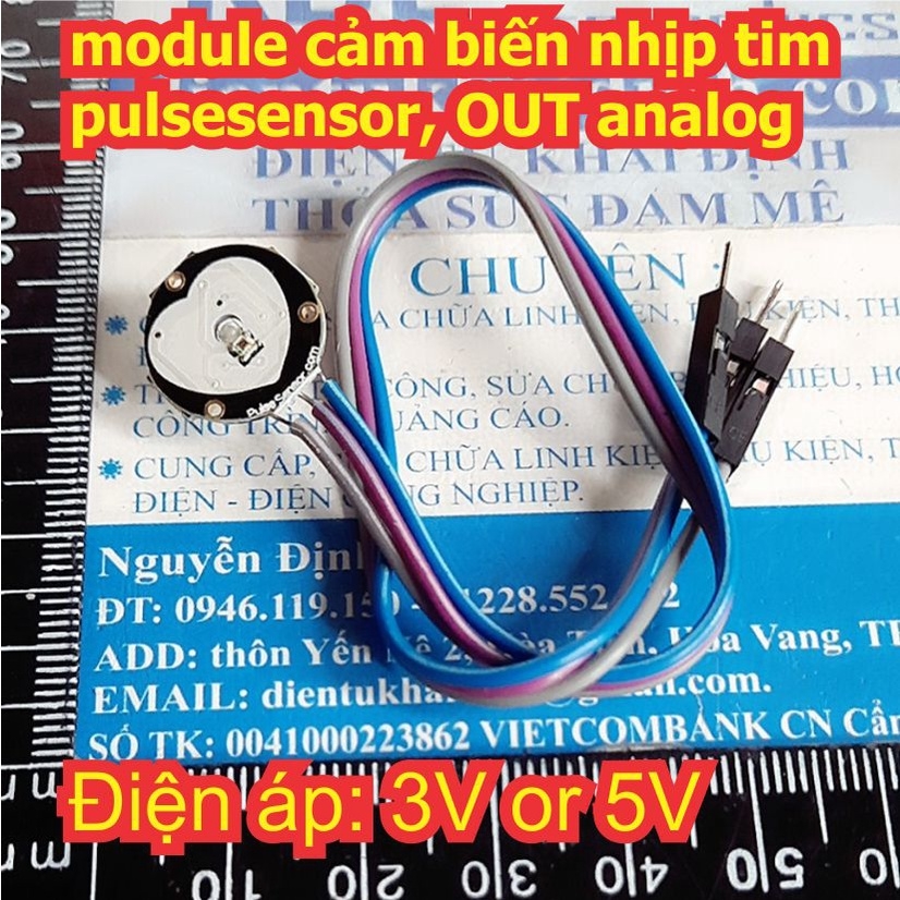 module cảm biến nhịp tim pulsesensor OUT analog, áp: 3V or 5V kde0010