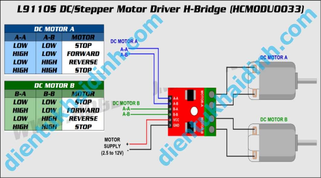 MODULE ĐIỀU KHIỂN 2 ĐÔNG CƠ L9110/L9110S 3-12V,0,8A kde0124