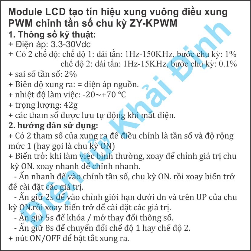 Module LCD Bộ tạo tín hiệu xung vuông điều xung PWM chỉnh tần số chu kỳ ZY-KPWM kde9201