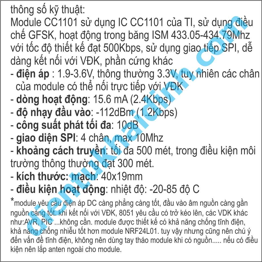 MODULE RF thu phát CC1101 433Mhz 500m anten onboard kde0479