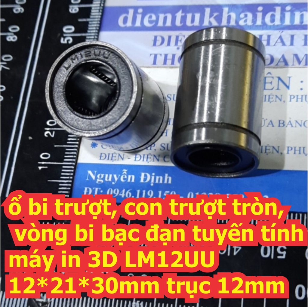 ổ bi trượt, con trượt tròn, vòng bi bạc đạn tuyến tính máy in 3D LM12UU 12*21*30mm trục 12mm kde7220