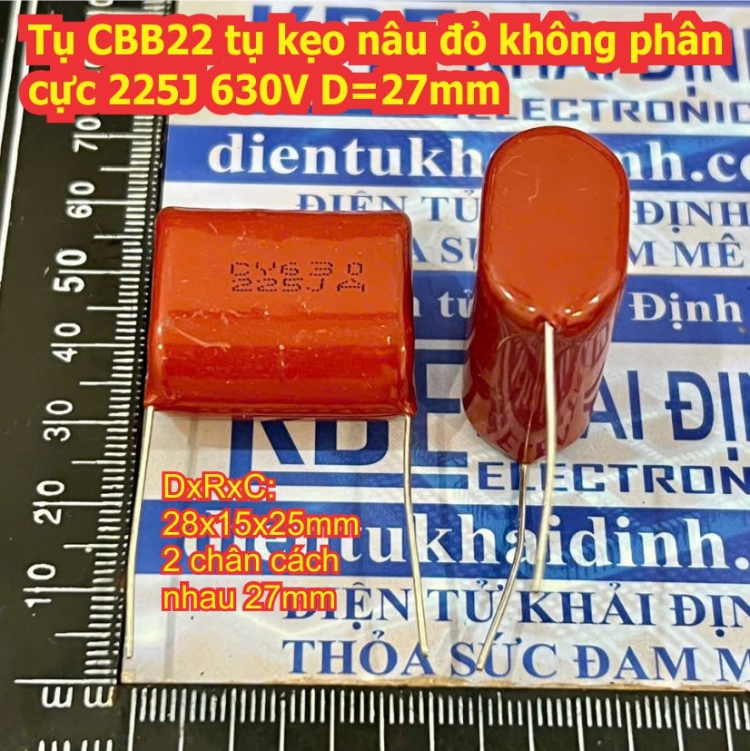 Tụ CBB22 CBB tụ kẹo nâu đỏ không phân cực 225J 630V D=25mm 27mmmm kde1761